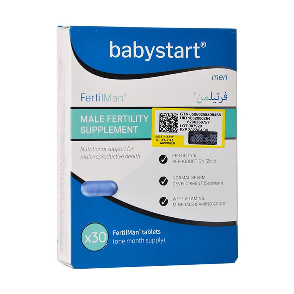 قرص فرتیلمن بی بی استارت حاوی انواع ویتامینها، املاح معدنی و اسیدهای آمینه مورد نیاز برای بدن بوده و مناسب برای آقایانی است که تصمیم دارند بچهدار شوند. این مکمل غذایی به افزایش قدرت باروری در مردان کمک میکند. با استفاده از این قرص تعداد و همچنین تحرک و توان اسپرم ها آنها افزایش یافته و احتمال بارور نمودن تخمک افزایش مییابد. تنها خانمها نیستند که باید قبل از اقدام برای بارداری، با انواع ویتامینها بدن خود را آماده کنند. آقایان نیز باید رژیم غذایی مناسبی داشته باشند تا به وسیله آن بتوانند در بارور نمودن موفق باشند. علاوه بر ویتامین و مواد معدنی در این قرص از اسیدهای آمینه آرژنین، تائورین و کارنیتین نیز استفاده شده است که هر کدام برای افزایش توان بدن بسیار مفید هستند. مواد تشکیل دهنده این قرص به دقت انتخاب شده و با توجه به استانداردهای اتحادیه اروپا در محصول گنجانده شده است. این مکمل حاوی 30 عدد قرص بوده و مدتی قبل از تصمیم برای اقدام برای بارداری مصرف آن باید آغاز شود.