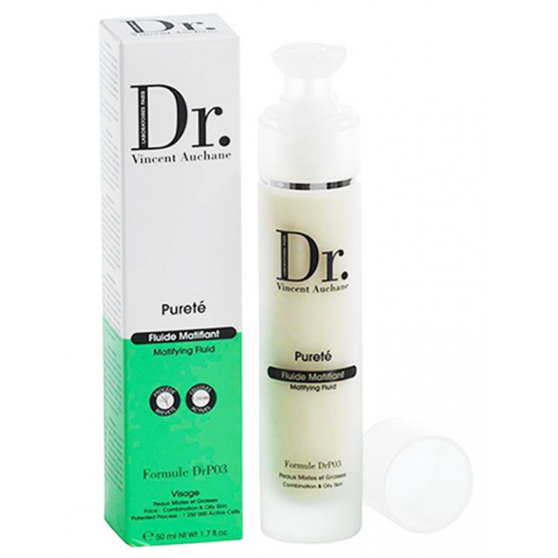 Dr.Vincent Auchane Matifying Fluid ساخت کشور: فرانسه – بهبود تنفس سلولی – جذب چربی اضافه پوست – تنظیم فلور طبیعی – کوچک شدن منافذ باز پوست – لایه برداری ملایم پوست – کاهش براقی پوست های چرب و مختلط – موثر در بهبودی جوش های پوست های چرب – این محصول قابل استفاده برای انواع پوست حتی پوست های حساس می باشد.
