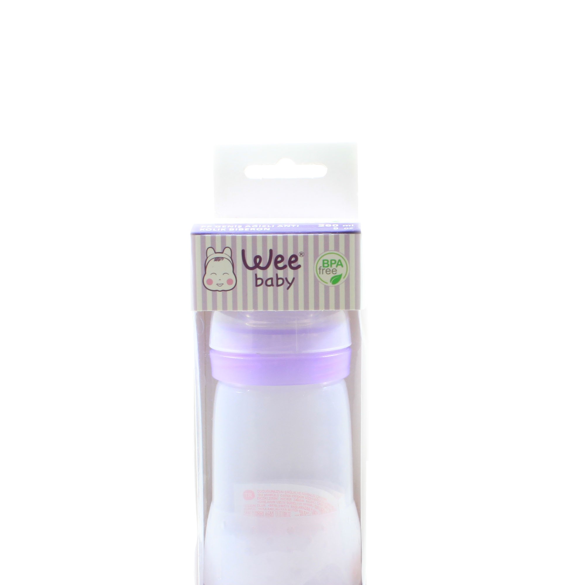 بطری شیرخوری پروپیلن دهانه عریض ۲۵۰ میل وی بیبی ، مناسب برای کودکان ۶-۰ ماه است.