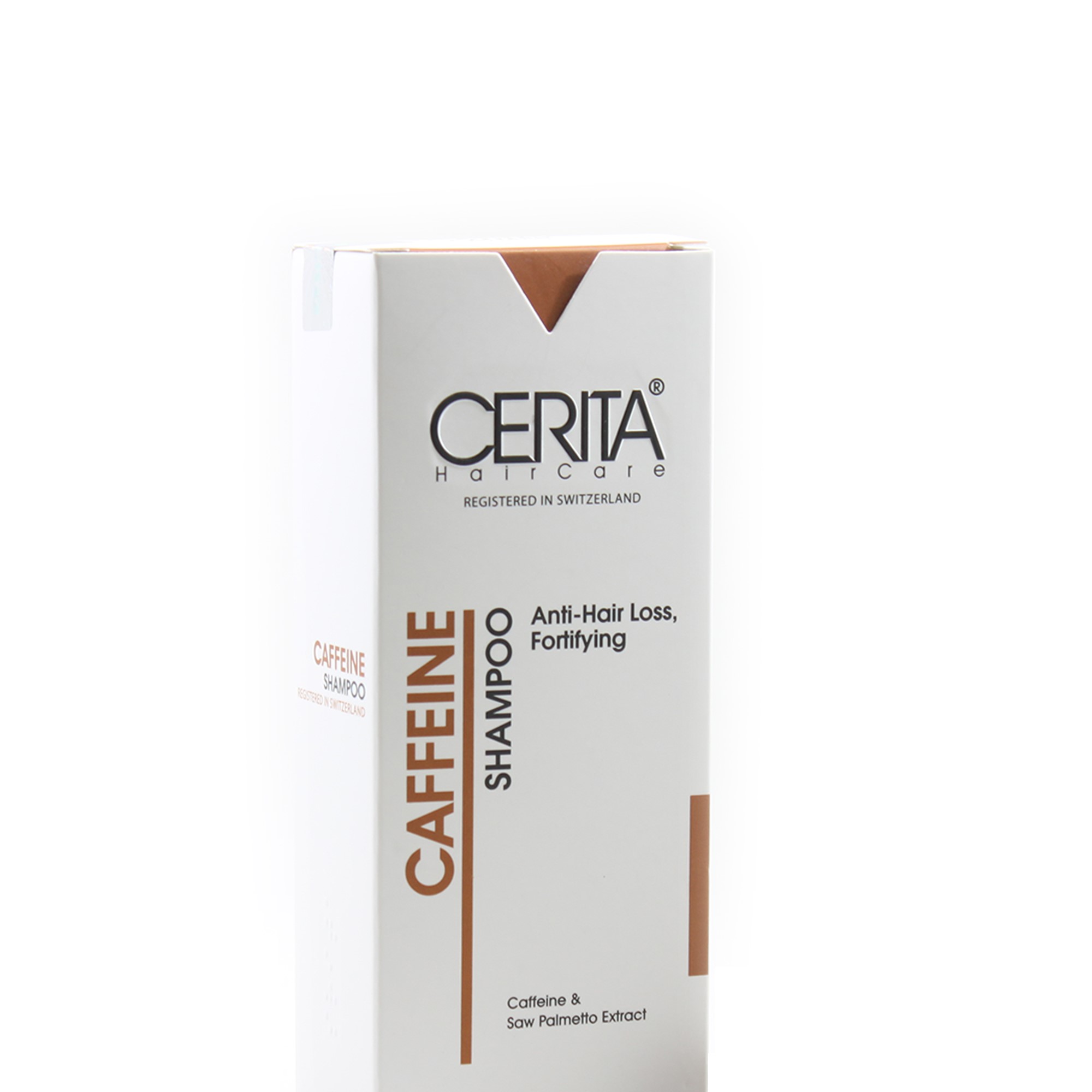 شامپو کافئین سریتا حاوی ترکیبات موثر کافئین، ساوپالمیتو، پروتئین جوانه گندم و عصاره های گیاهی است که باعث تقویت مو، کنترل ریزش مو و کمک به رویش و رشد مجدد مو، می گردد.