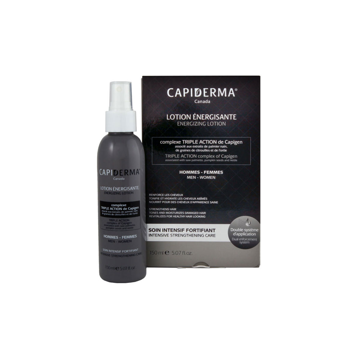 این محصول به همراه ترکیبات سه گانه عصاره های نخل اره ای ، دانه کدو تنبل و عصاره گزنه که غنی از آهن و سیلیس است به بازسازی مجدد مو کمک کرده و همچنین با مقاوم نمودن ریشه مو که در اثر وجود گیاهان دارویی شناخته شده در این محصول است بر سرعت رشد مو نیز تاثیر بسزایی دارد.